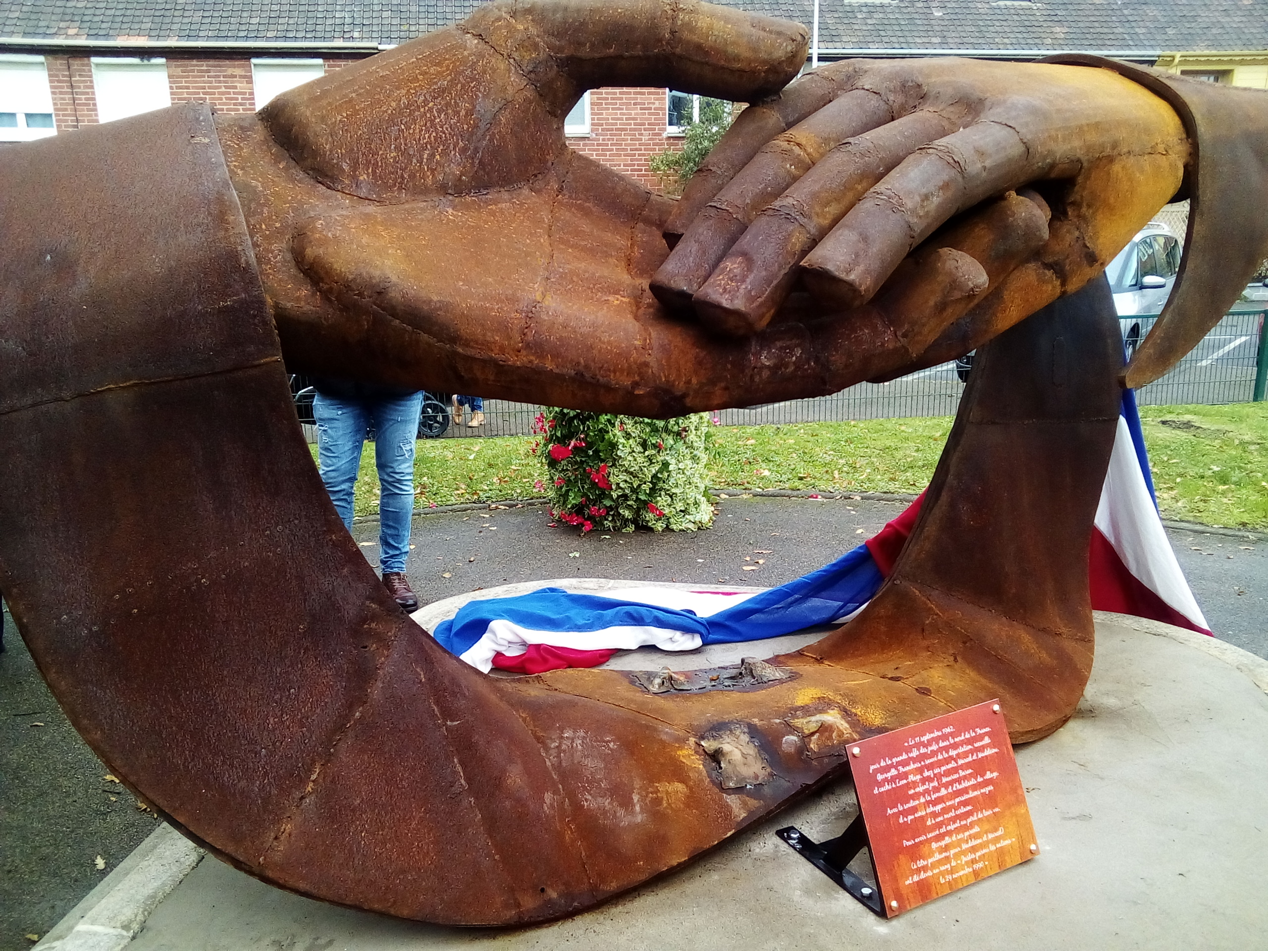 Plus d’une centaine de personnes sont présents. Eric Rommel, le maire, sa première adjointe, Isabelle Fernandez, d’autres élus, la fanfare, enfin, tous celles et ceux qui de près ou de loin ont encouragé et participé à cette commémoration qui est plutôt une remémoration car c’est par elle que nous pouvons mettre au travail la mémoire et l’histoire. Il y a aussi les autres habitants qui retrouvent ou découvrent enfin l’histoire de Georgette Franchois épouse Vandenabeelle, déjà élevée avec ses parents Madeleine et Marcel (eux deux, à titre posthume) au titre de Justes parmi les nations depuis le 29 novembre 1990. Désormais, c’est toute une ville des Hauts-de-France, département où l’on a recensé 80 Justes, qui honore d’un square à son nom et d’une sculpture qui représente par deux mains qui se tendent, le geste courageux de Georgette Franchois dont chaque Loonois peut être fier.